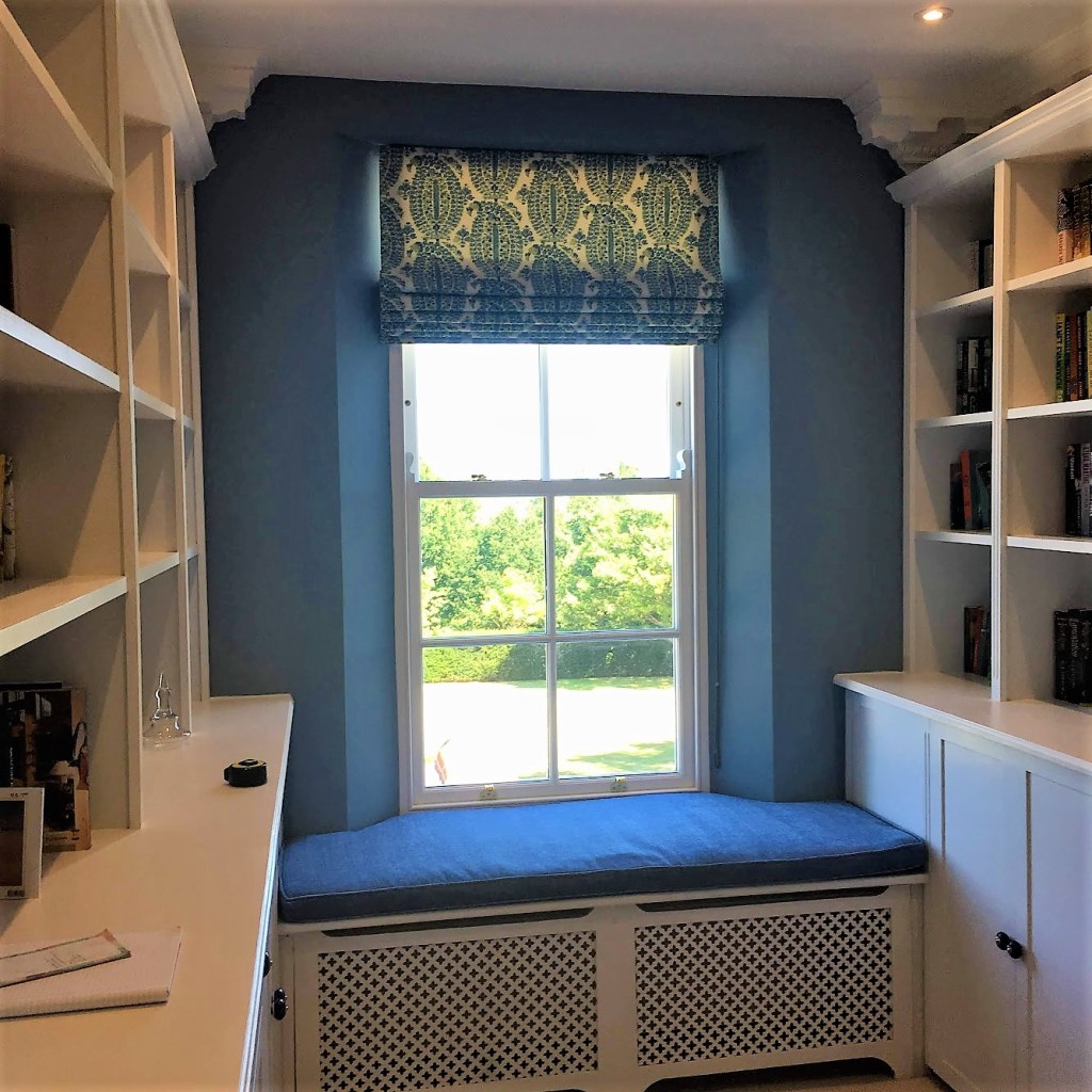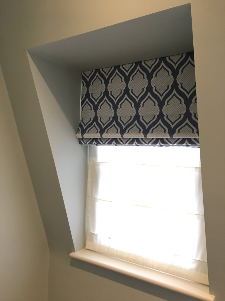 Blinds are a great alternative to curtains for a simpler look or are an attractive addition for a layered look with curtains. Our Roman blinds are hand sewn with the layers held together with locking stitches so that no stitching is seen from the front of the blind. All our blinds are child safe.